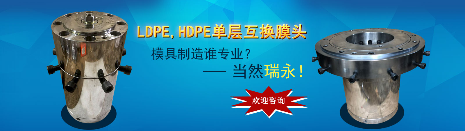瑞安市瑞永模具有限公司是一家科研、制造、銷售、服務為一體的綜合性企業(yè)。專業(yè)生產各種規(guī)格的吹膜機膜頭、吹膜機三通、吹膜機風環(huán)、吹膜機旋轉器、吹膜機配件等相關配件的生產廠家;專注吹膜機模具也有15年歷史。